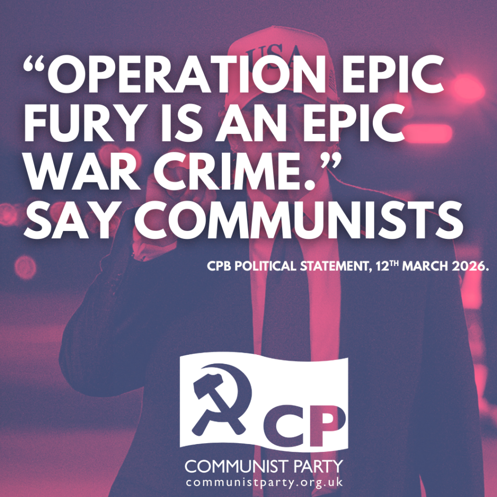 The illegal and treacherous attack on Iran launched by the US and Israel on 28 February while diplomatic talks between the US and Iran were taking place in Geneva highlights imperialism’s disastrous consequences for the people of Iran, the Middle East and the working-class globally, the Communist Party declared at a meeting of its Political Committee on Monday 9 March 2026.